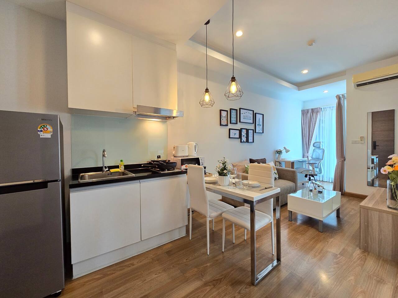 However, Nimmanhemin area is near the airport, within a 10-15 minute drive. Sometimes, airplane noise can be heard throughout the area. But if you keep the windows and doors closed, it will be okay. The apartment is have a long-term residence. Please be respectful during your stay. Monthly rent conditions: Please note that the monthly rate guests pay to Airbnb excludes utility usage. Electricity usage will be charged based on actual usage at 6 baht per unit. Water supply is 30 baht per unit during your stay on the first day and on the checkout date. If you turn on the air conditioner only when you sleep at night, it should be around 1,000-1,500 baht per month. Cleaning is done once per week free of charge, with cleaning and a change of towels and linen during your stay.. Rooftop Swimming pool and gym open 7:00 am to 9 pm.