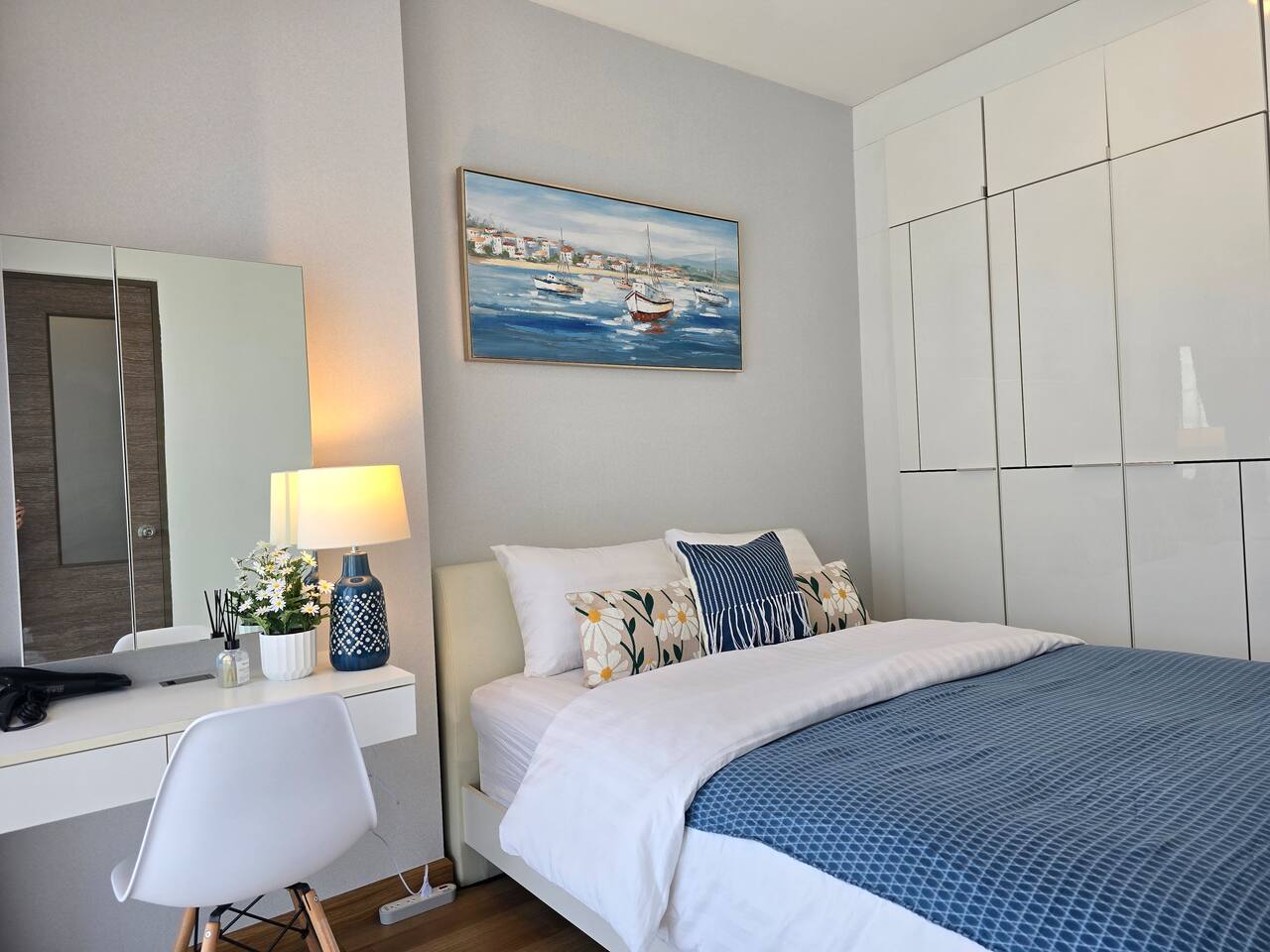 The space is a 34 SQM, modern 1 bedroom condo. 5 Floor City view. BED ROOM: *Queen bed with City View *Cabinet with plenty of storage *Make up desk with mirror & chair *Iron board with Iron *Air conditioner BATH ROOM: *Standing shower with all the essential provided *2 set of body towel and hair towel *Hot water LIVING ROOM: *Sofa and TV provided Cable TV that you can enjoy your relax time. *Dining table with 2 chair *Desk for laptop work. *Office chair *Air conditioner *Wifi speed 50/20 *Balcony *Washing Machine KITCHEN: *Big refrigerator *Stove top *Hood for cooking *Full of kitchen appliances The rooftop swimming pool and Gym is on 7 floor Open Daily at 7 am to 9 pm. The apartment have parking space. Well clean and 24 hours security.