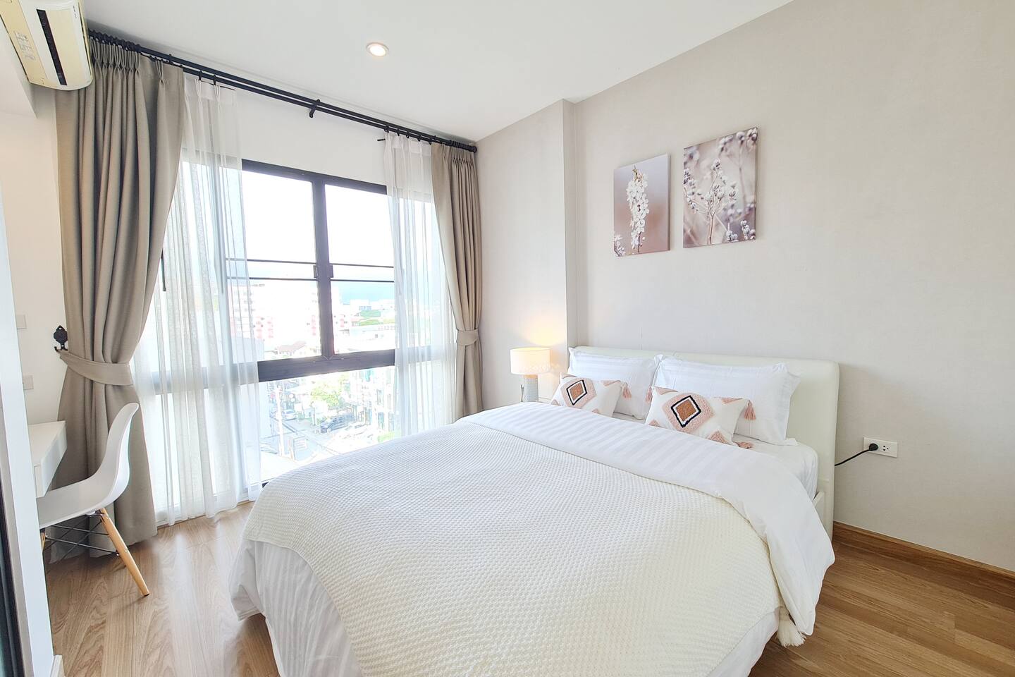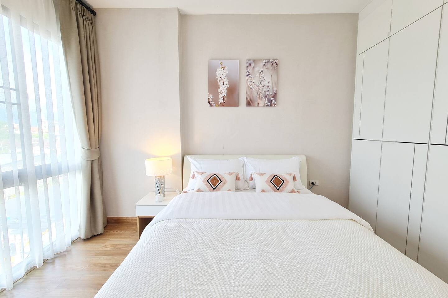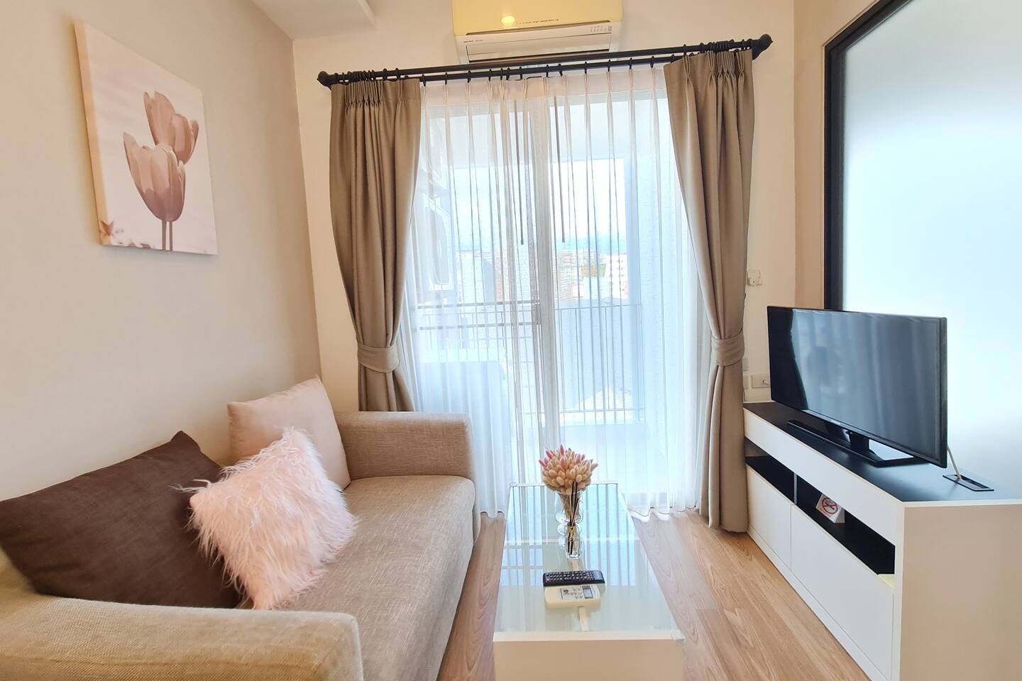 The space is a 32 SQM, brand new, modern 1 bedroom condo. 6 Floor Mountain view. BED ROOM: *Queen bed *Cabinet with plenty of storage *Make up desk with mirror & chair *Iron board with Iron *Air conditioner BATH ROOM: *Standing shower with all the essential provided *2 set of body towel and hair towel *Hot water LIVING ROOM: *Sofa and TV provided Cable TV *Dining table with 2 chair *Air conditioner *Wifi speed 50/20 *Balcony *Washing Machine KITCHEN: *Big refrigerator *Stove top *Hood for cooking *Full of kitchen appliances The rooftop swimming pool and Gym is on 7 floor Open Daily at 7 am to 9 pm. The apartment have parking space. Well clean and 24 hours security.