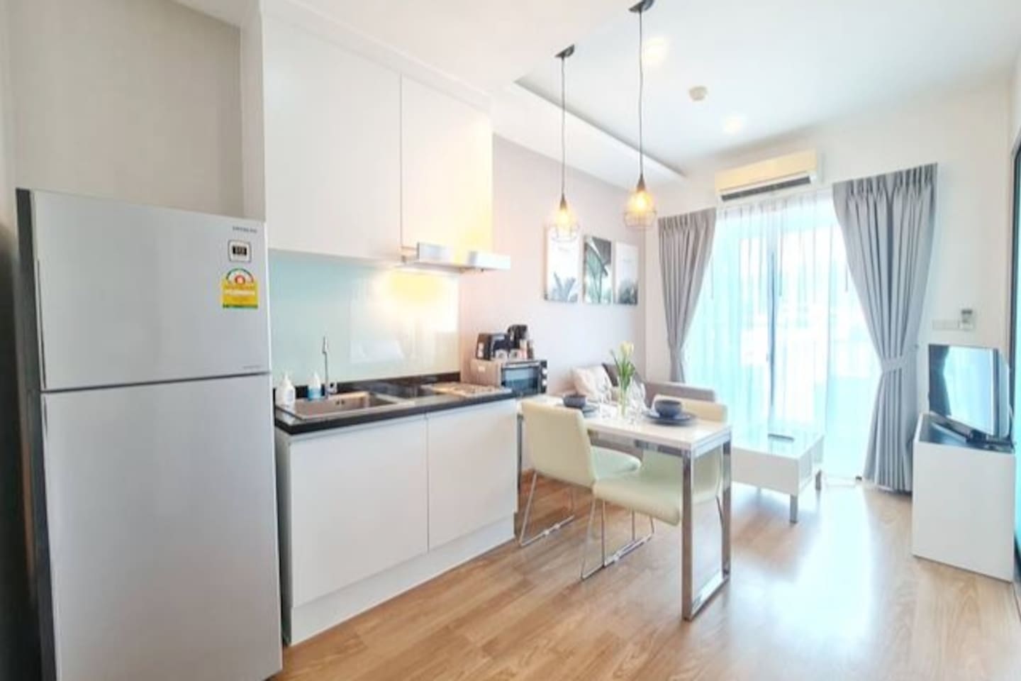 The space is a 32 SQM, brand new, modern 1 bedroom condo. 7 Floor Mountain view. BED ROOM: *Queen bed *Cabinet with plenty of storage *Make up desk with mirror & chair *Iron board with Iron *Air conditioner BATH ROOM: *Standing shower with all the essential provided *2 set of body towel and hair towel *Hot water LIVING ROOM: *Sofa and TV provided Cable TV that you can enjoy your relax time. *Dining table with 2 chair *Air conditioner *Wifi speed 50/20 mbps. *Balcony *Washing Machine KITCHEN: *Big refrigerator *Stove top *Hood for cooking *Full of kitchen appliances The rooftop swimming pool and Gym is on 7 floor Open Daily at 7 am to 9 pm. The apartment have parking space. Well clean and 24 hours security.