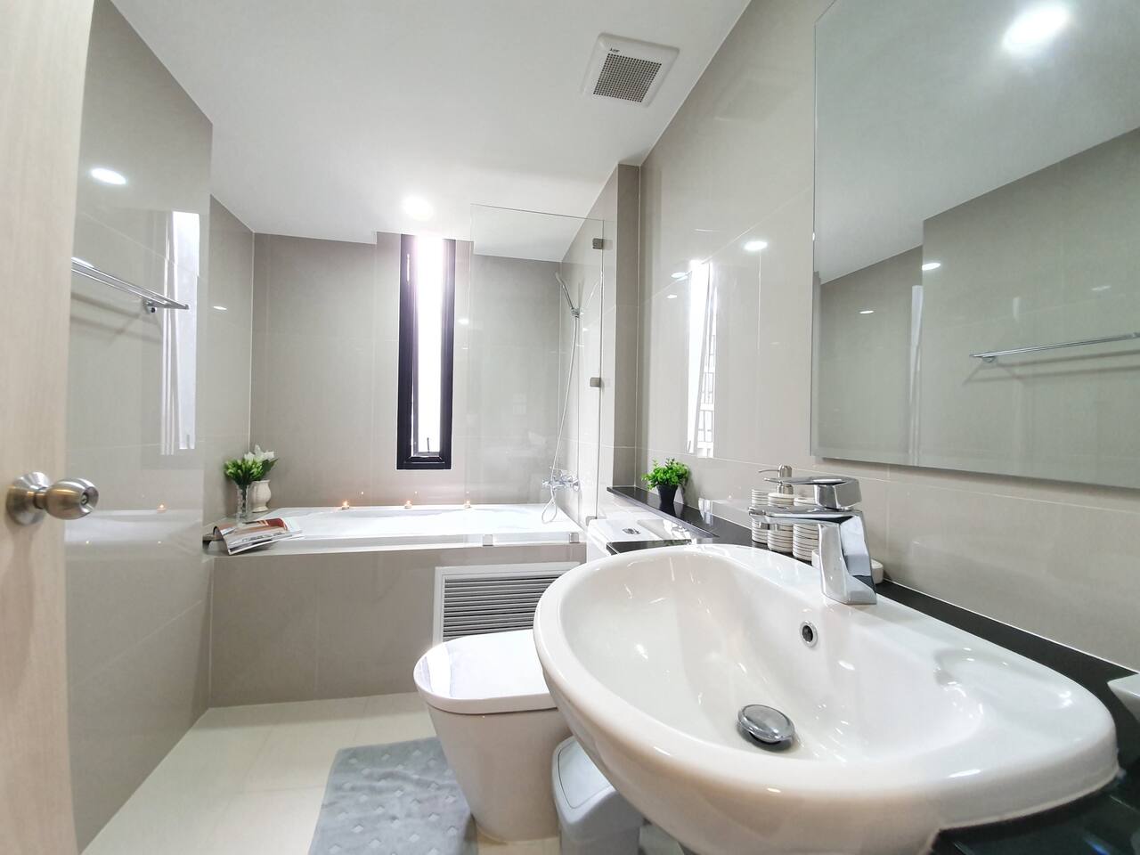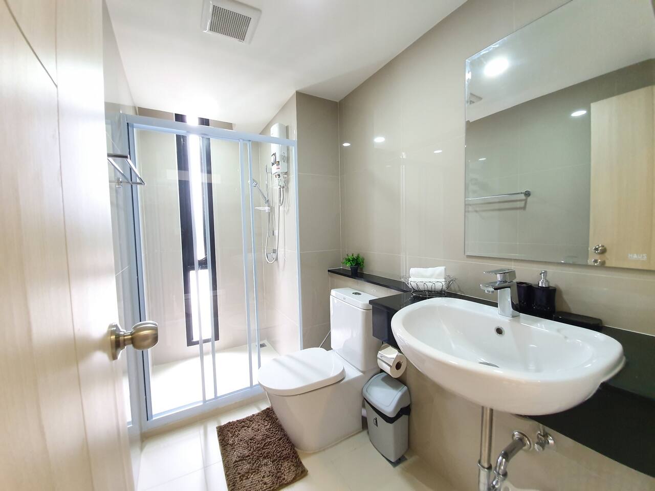 The space is a 76.25 SQM, modern 2 bedroom condo. 6 Floor with 2 balcony City/Mountain view. ll HAVE AIR PURIFIER ll BED ROOM 1 : *Queen bed with City View *Cabinet with plenty of storage *Make up desk with mirror & chair *Iron board with Iron *Air conditioner *Ensuite Bathroom BED ROOM 2 : *Queen bed with City View *Cabinet with plenty of storage *Make up desk with mirror & chair *Air conditioner *Ensuite Bathroom *Balcony *Washing Machine Bath room 1 *Standing shower with all the essential provided *2 set of body towel, hair towel, Hand Towel *Hot water *Toilet Bath room 2 *Bath Tub with all the essential provided *2 set of body towel, hair towel, Hand Towel *Hot water *Toilet LIVING ROOM: *Sofa and TV provided Cable TV. *Dining table with 5 chair *Air conditioner *Wifi speed 50/20 *Balcony KITCHEN: *Refrigerator *Stove top *Hood for cooking *Full of kitchen appliances The swimming pool and Gym is on 1 floor Open Daily at 7 am to 9 pm. The apartment have parking space. Well clean and 24 hours Security Guard.