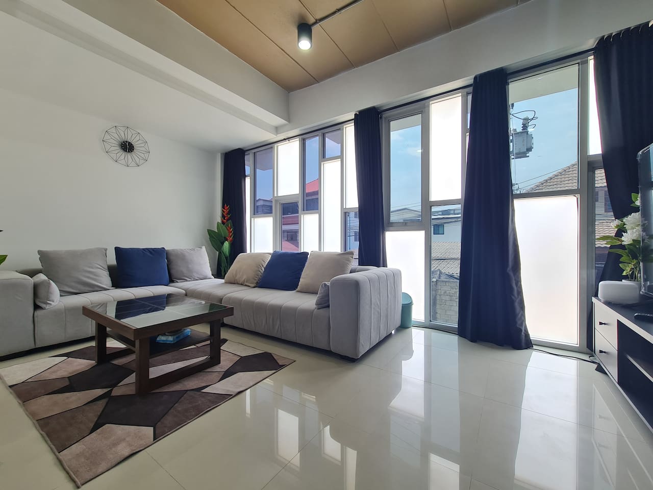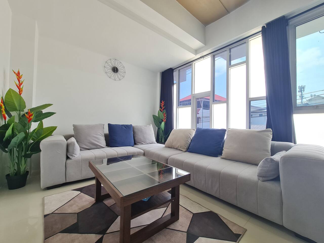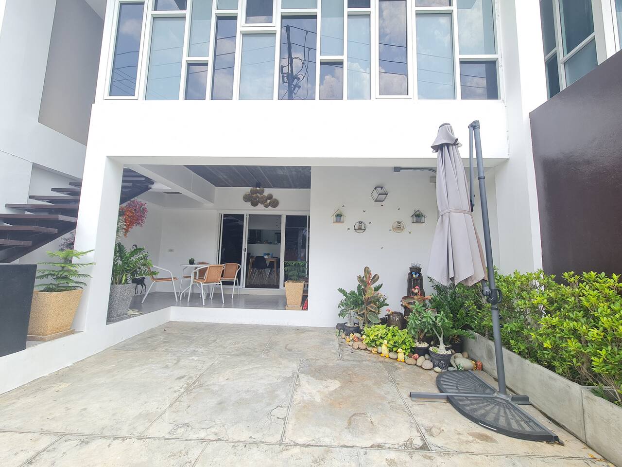 The villa is 3 story 400 Sqm. With 5 bedroom and 4 bath room. Full kitchen and 1 Carpark. With hight speed WIFI Download 1000Mbps /Upload 300 Mbps. FIRST FLOOR Kitchen and dining area Table and chair outside Parking area Kitchen - Gas Stove - Refrigerator - Kitchen tools - Microwave -Washing machine - Rice cooker - Ketle - Utensils - Bath room 1 SECOND FLOOR -Living room with smart TV65" - Sofa Bed Area -Bedroom 2 queen size bed + bathroom 2 -Bedroom 5 single size bed 3 floor Bedroom 1 - King size bed + Balcony + Bathroom 3 -Bedroom 3 queen size bed + bathroom 4 -Bedroom 4 queen size bed